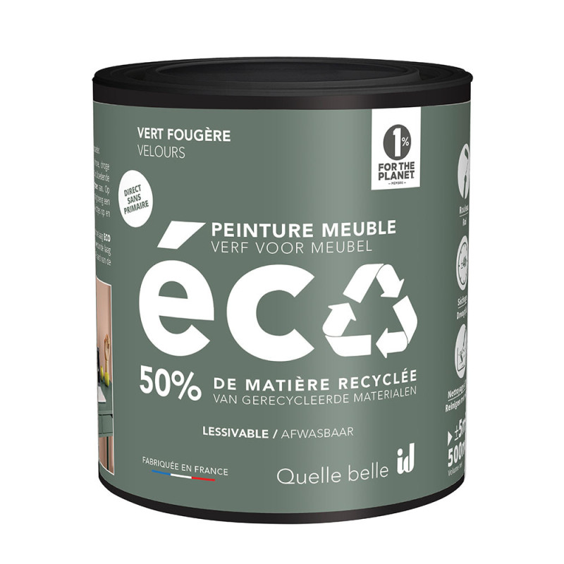 La peinture pour meuble ID ECO MEUBLE vert fougère velours 500ml allie une formule en phase aqueuse à une forte opacité pour une couvrance parfaite dès la première couche. Sa finition veloutée procure un toucher doux et un rendu élégant, tandis que sa composition lessivable facilite l’entretien et garantit une résistance durable aux taches et frottements. Adaptée à une large gamme de supports, elle assure une application fluide et un résultat uniforme. Le vert fougère, profond et naturel, apporte une touche fraîche et authentique à vos espaces, combinant esthétique, durabilité et respect de l’environnement.