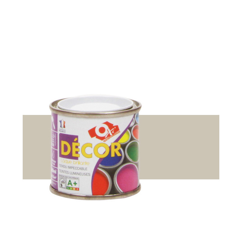 Peinture Oxitol laque émaillée couleur gris clair brillant destinée à la rénovation ou à la décoration d'objets, meubles, menuiseries… S'applique sur fers, bois, plâtres, cartons, plastiques, cuirs… Elle est très résistante aux chocs et aux rayures et offre un bon tendu et un bon pouvoir couvrant.