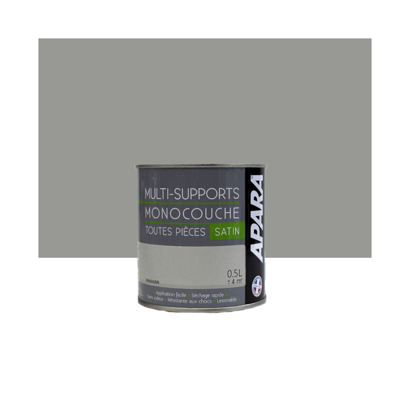 Peinture Apara multi-supports Murs, plafonds, boiseries, plinthes... gris mandarin satin 0,5L