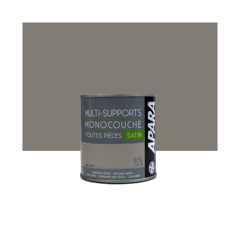 Peinture Apara multi-supports Murs, plafonds, boiseries, plinthes... gris altaï satin 0,5L