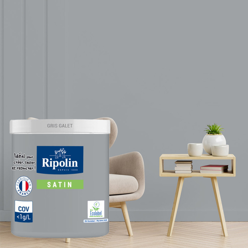 Peinture testeur RIPOLIN Esprit Déco murs, plafonds, boiseries et radiateurs gris galet satin 75ML