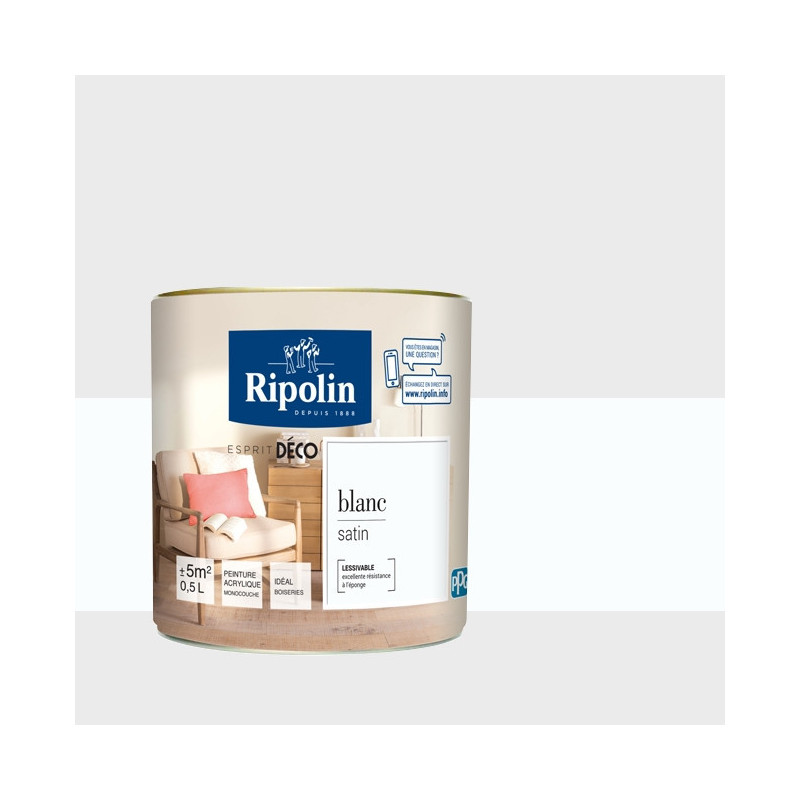 Peinture RIPOLIN Esprit Déco murs, plafonds, boiseries et radiateurs blanc satin 0,5L