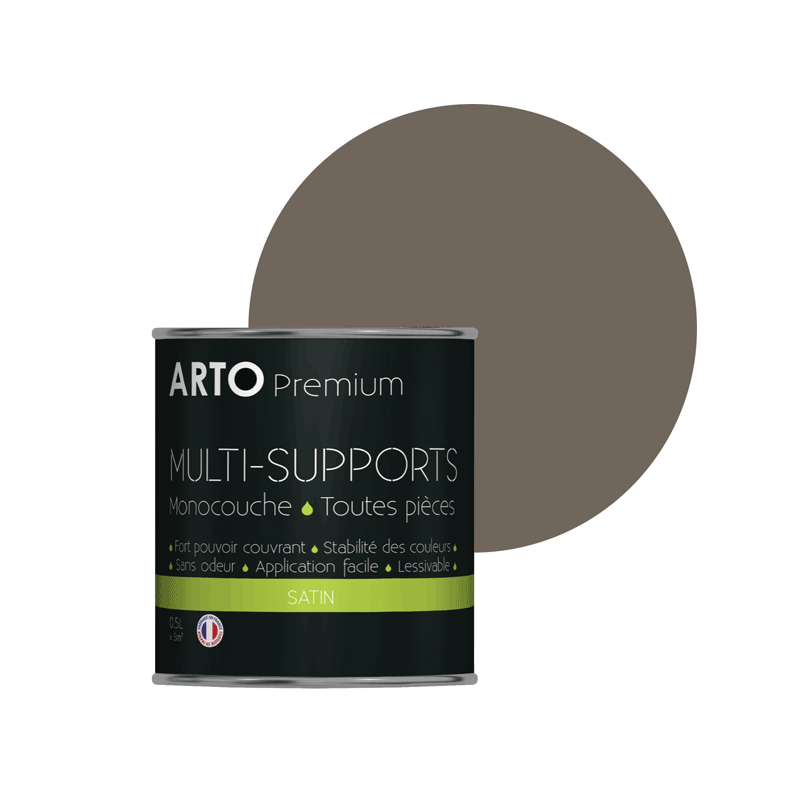 Peinture ARTO premium multi-supports murs, plafonds, boiseries, plinthes et radiateurs taupe satin 0,5 L