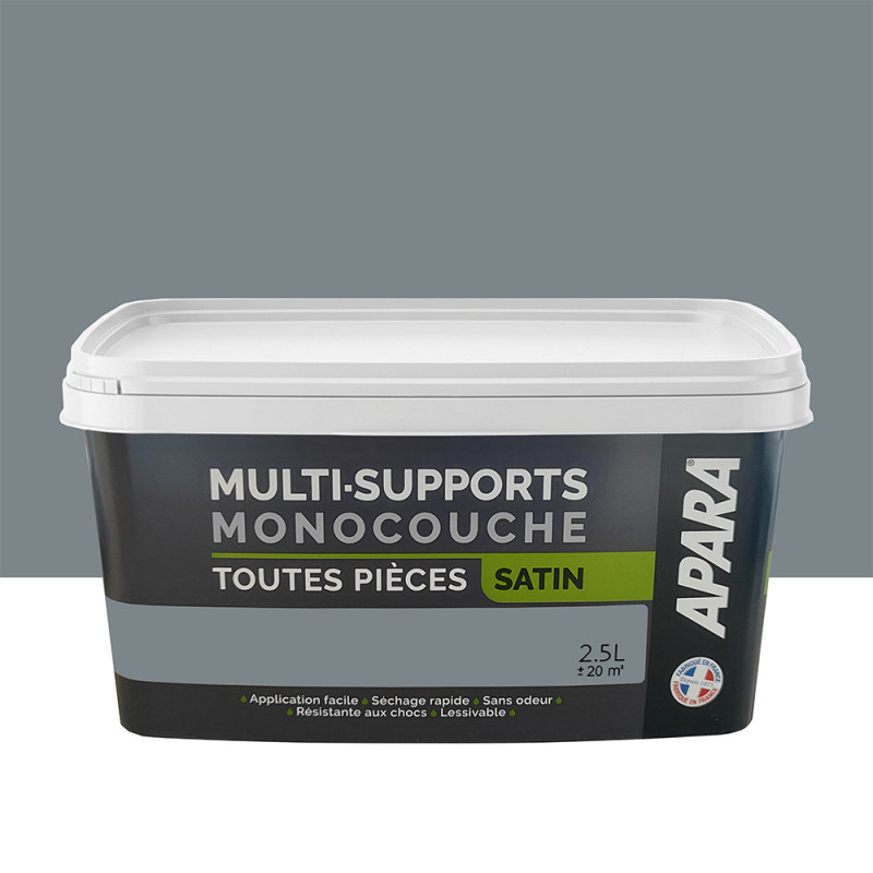Peinture Apara multi-supports Murs, plafonds, boiseries, plinthes… gris souris satin 2,5L