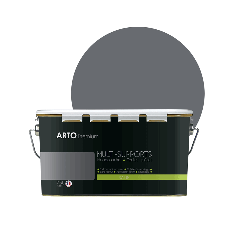 Peinture ARTO premium multi - supports murs, plafonds, boiseries, plinthes et radiateurs gris basalte satin 2,5 L