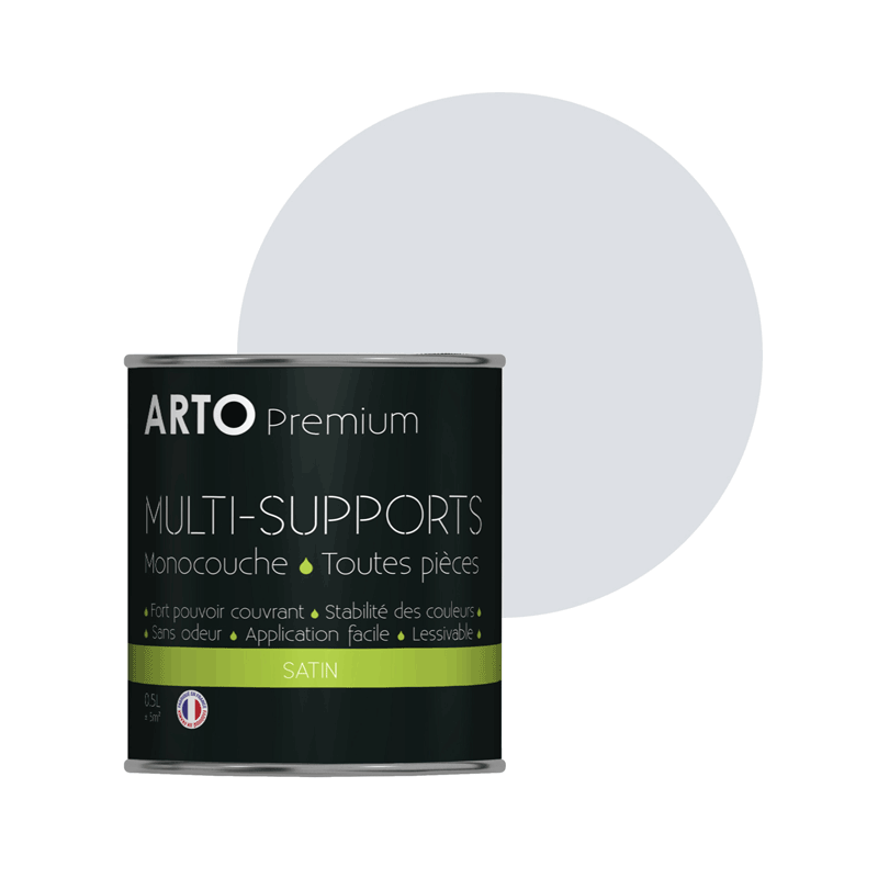 Peinture ARTO premium multi-supports murs, plafonds, boiseries, plinthes et radiateurs gris lunaire satin 0,5 L