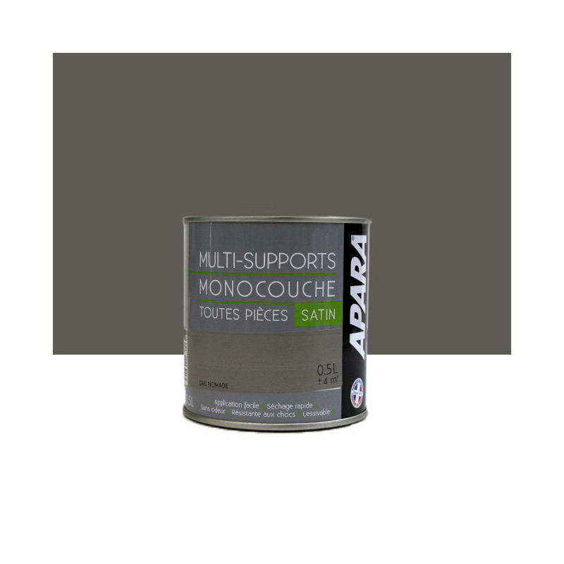 Peinture Apara multi-supports Murs, plafonds, boiseries, plinthes... gris nomade satin 0,5L