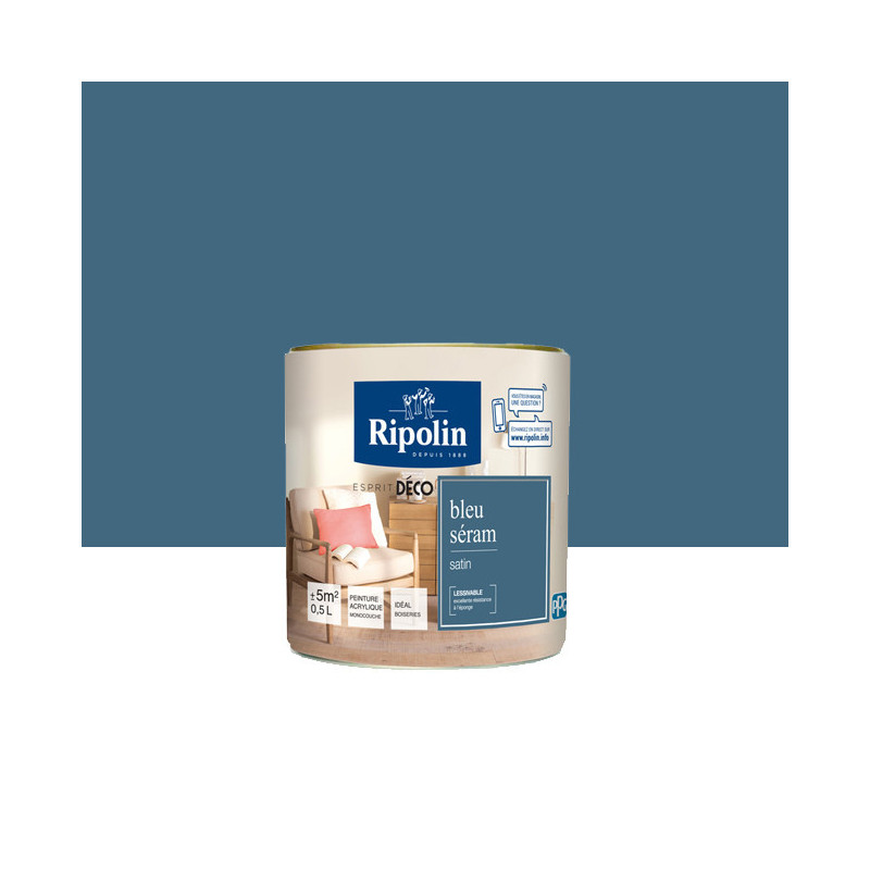Peinture RIPOLIN Esprit Déco murs, plafonds, boiseries et radiateurs bleu seram satin 0,5L
