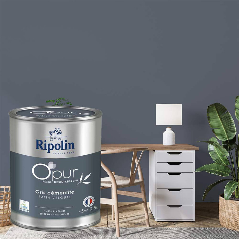 La gamme de peinture Ripolin Opur couleur gris cémentite est composée à 97% de résines bio-sourcées. Elle associe haute qualité et performance tout en contribuant à la préservation de votre santé et de l'environnement. Idéale pour toutes les pièces de la maison. Nous recommandons un lessivage après 3 semaines de pose.