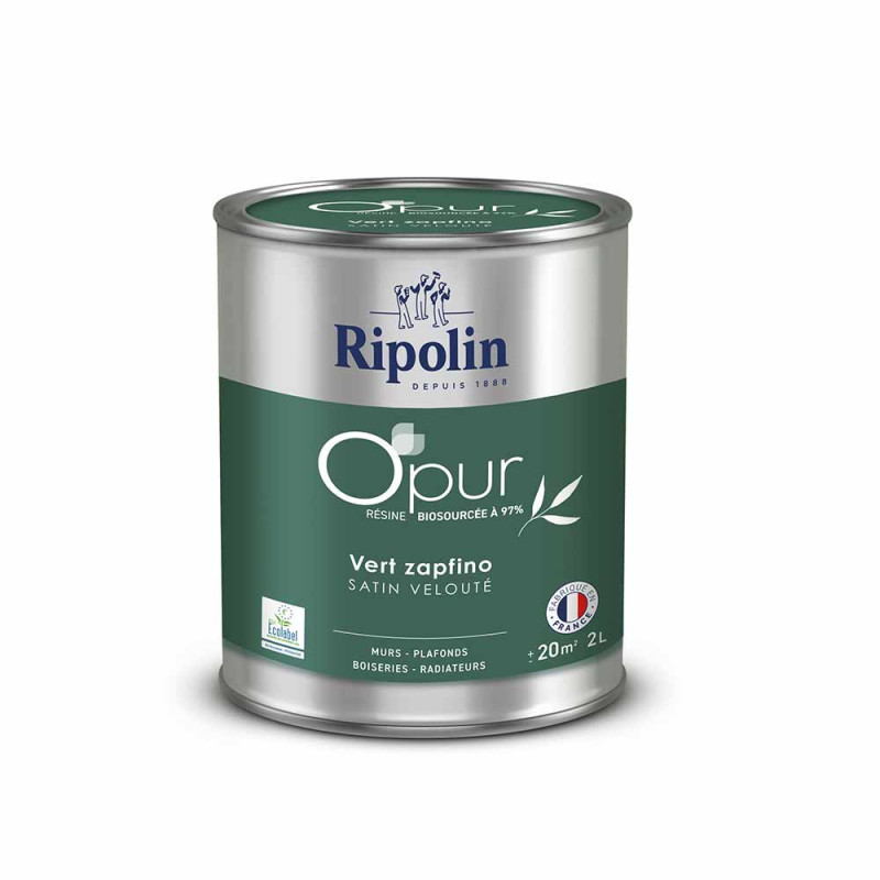 La gamme de peinture Ripolin Opur couleur vert zapfino est composée à 97% de résines bio-sourcées. Elle associe haute qualité et performance tout en contribuant à la préservation de votre santé et de l'environnement. Idéale pour toutes les pièces de la maison. Nous recommandons un lessivage après 3 semaines de pose.