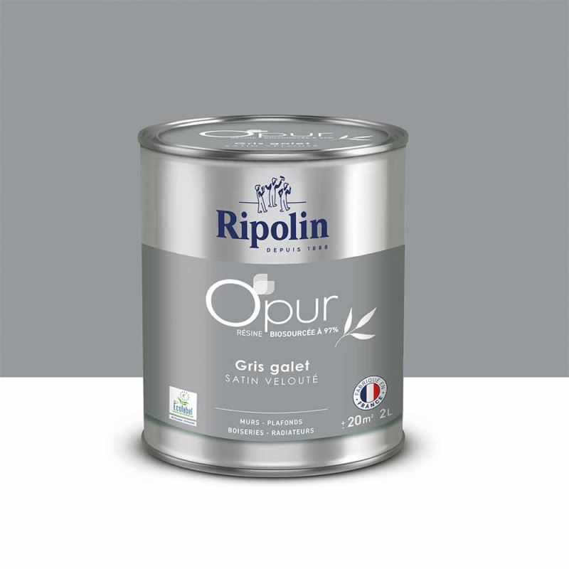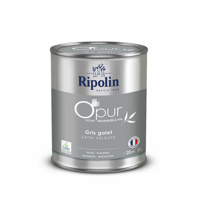 La gamme de peinture Ripolin Opur couleur gris galet est composée à 97% de résines bio-sourcées. Elle associe haute qualité et performance tout en contribuant à la préservation de votre santé et de l'environnement. Idéale pour toutes les pièces de la maison. Nous recommandons un lessivage après 3 semaines de pose.