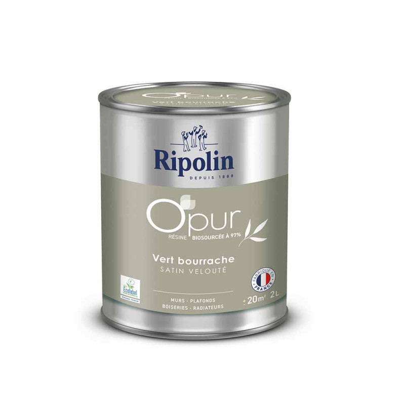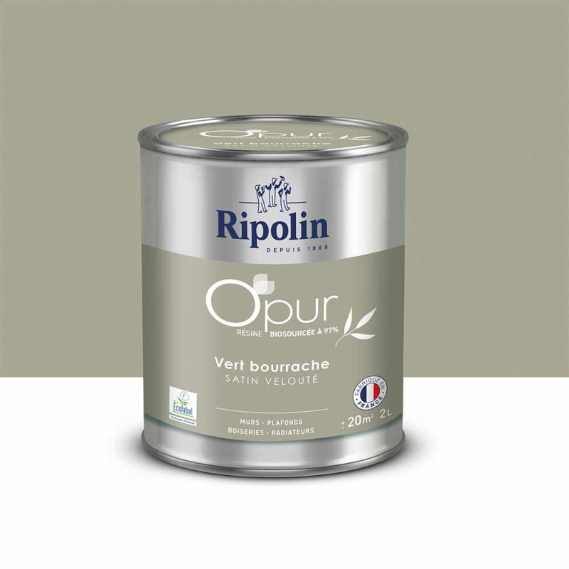 Peinture RIPOLIN Opur bio sourcée multi-supports vert bourrache satin 2L