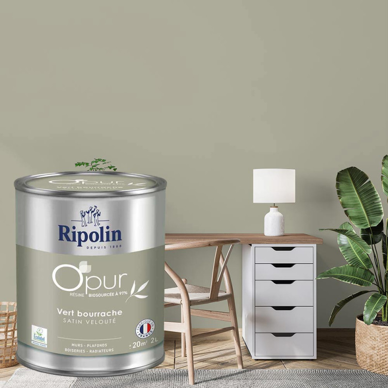 La gamme de peinture Ripolin Opur couleur vert bourrache est composée à 97% de résines bio-sourcées. Elle associe haute qualité et performance tout en contribuant à la préservation de votre santé et de l'environnement. Idéale pour toutes les pièces de la maison. Nous recommandons un lessivage après 3 semaines de pose.
