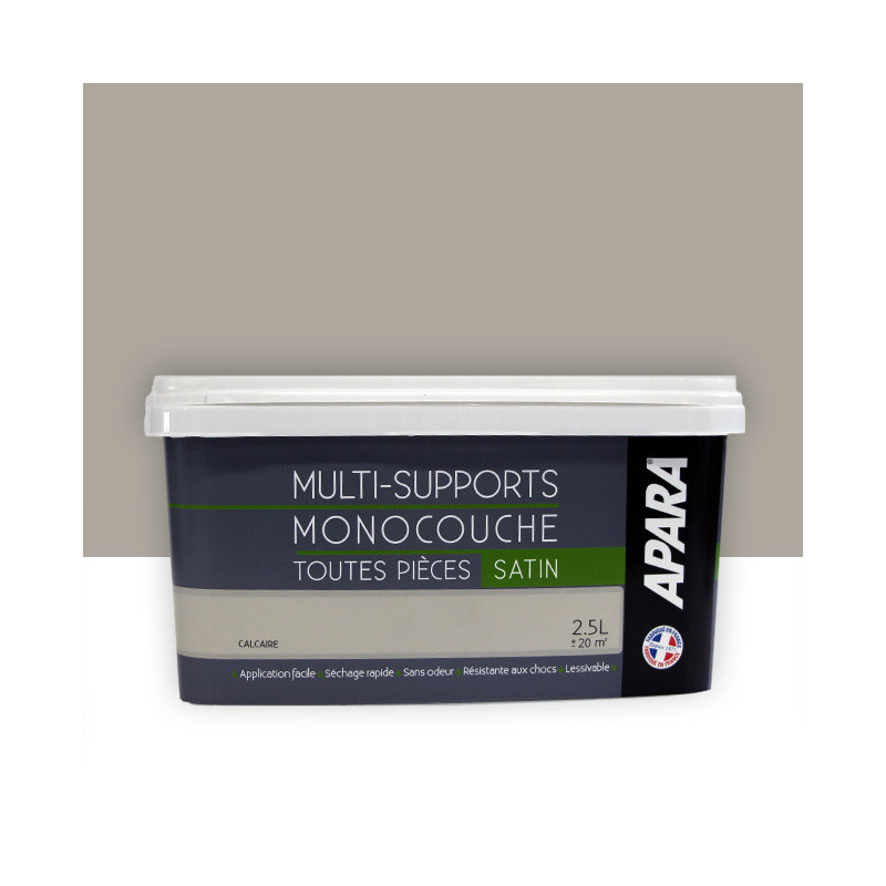 Peinture Apara multi-supports Murs, plafonds, boiseries, plinthes... beige calcaire satin 2,5L