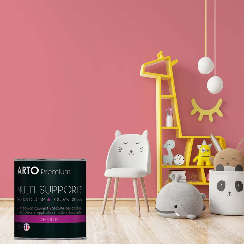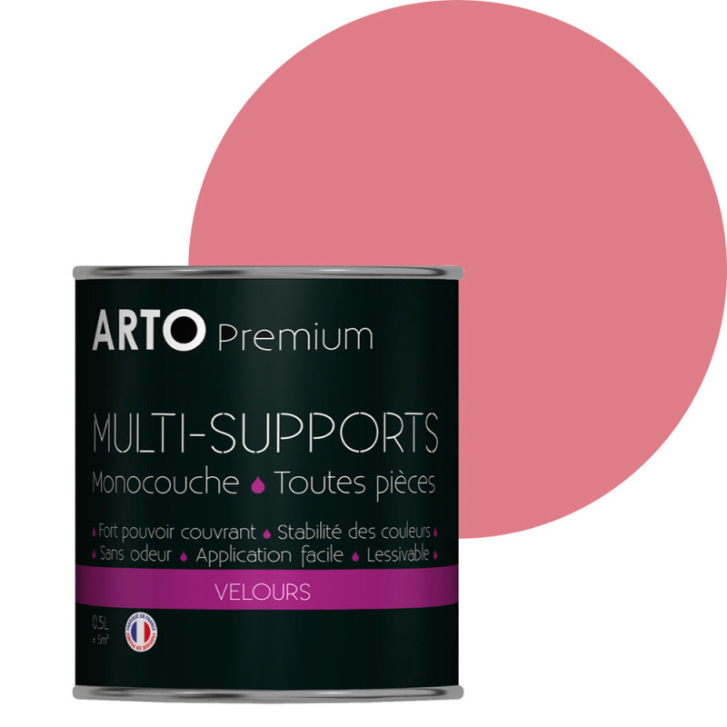 Peinture ARTO premium multi-supports murs, plafonds, boiseries, plinthes et radiateurs rose althéa velours 0,5 L