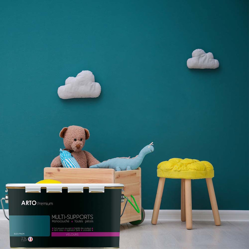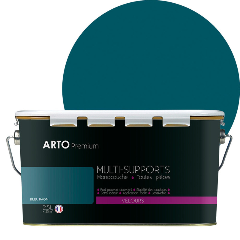Peinture ARTO premium multi-supports murs, plafonds, boiseries, plinthes et radiateurs bleu paon velours 2,5 L