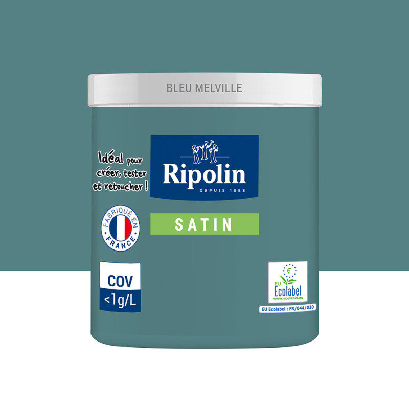 Peinture testeur RIPOLIN Esprit Déco murs, plafonds, boiseries et radiateurs bleu meville satin 75ML