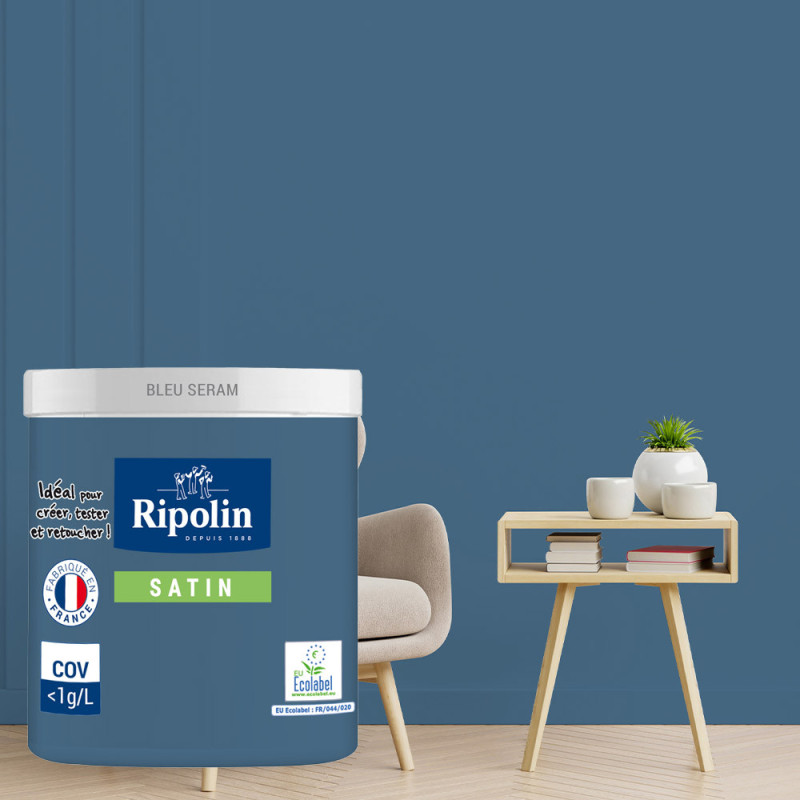 Peinture testeur RIPOLIN Esprit Déco murs, plafonds, boiseries et radiateurs bleu seram satin 75ML