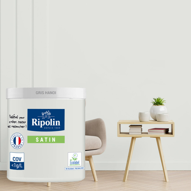 Optez pour le testeur de peinture Ripolin, la couleur gris Hanoi satin de la gamme RIPOLIN Déco vous permet de tester...