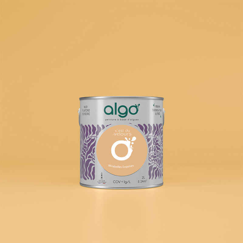 Peinture Algo bio sourcée multi-supports murs, plafonds et boiseries jaune mirabelle velours 2L