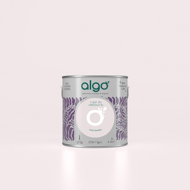 Peinture Algo bio sourcée multi-supports murs, plafonds et boiseries rose tendre velours 2L