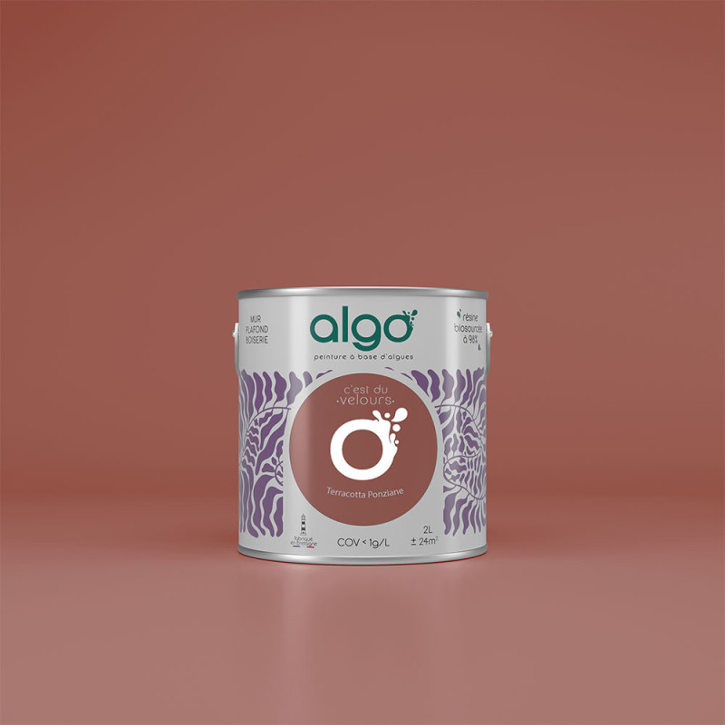 Ajoutez une touche chaleureuse à votre intérieur avec la Peinture Terracotta Algo Velours 2L ! Inspirée des teintes terre brûlée, le Terracotta est un choix parfait pour créer une ambiance accueillante et tendance. Facile à associer avec notre gamme de teintes naturelles telles que les ocres, les lins et les bruns, ce rouge profond se marie également à merveille avec des bleus foncés pour une esthétique contemporaine. Sa finition velours apporte un aspect feutré très décoratif tout en étant pratique, puisque cette peinture est lessivable et idéale toute pièce. Avec une résine biosourcée à 98 %, vous optez pour une solution écologique qui préserve la qualité de l'air intérieur. Transformez vos murs avec la peinture en véritables œuvres d'art avec cette couleur qui respire la chaleur et l'élégance !