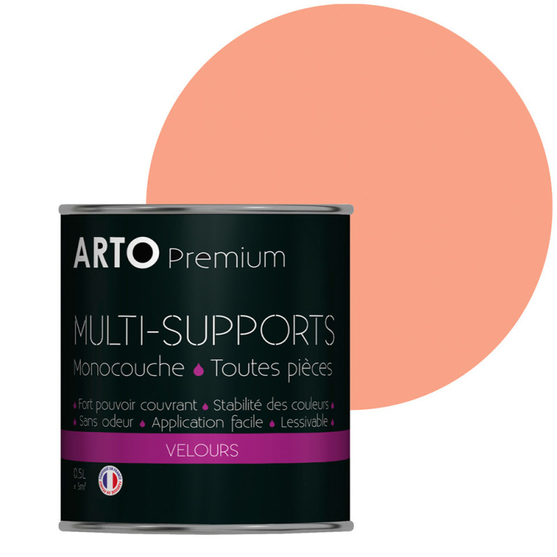 Peinture ARTO premium multi-supports murs, plafonds, boiseries, plinthes et radiateurs orange heliolite velours 0,5 L