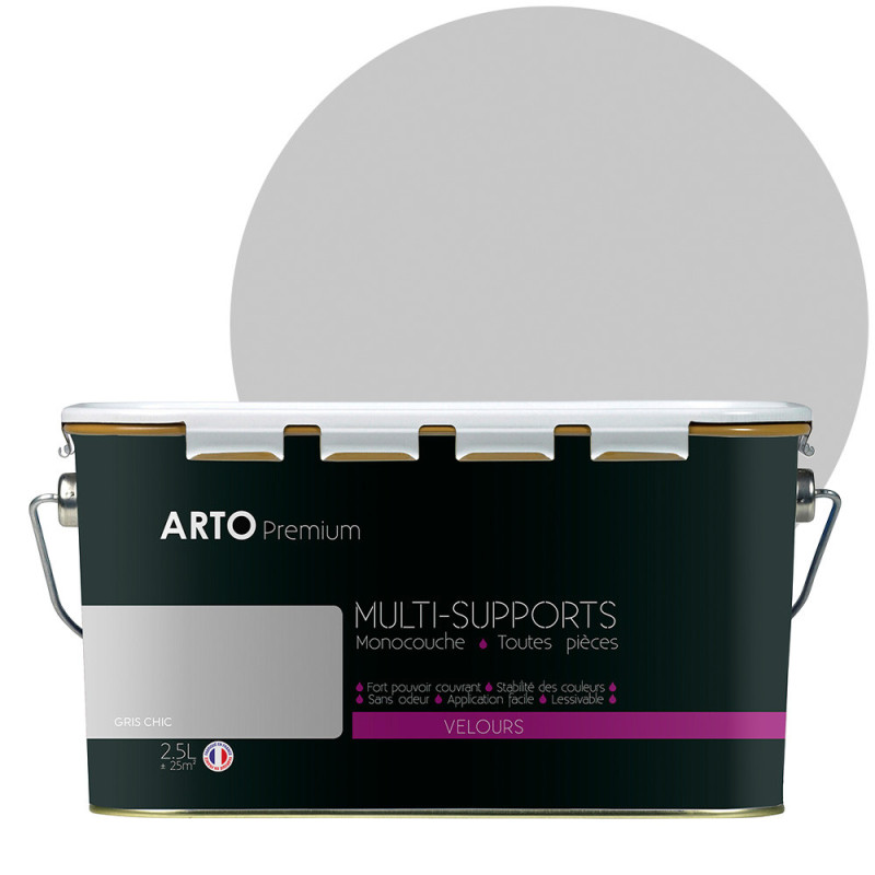 Peinture Arto Premium multi-supports murs, plafonds, boiseries, plinthes et radiateurs gris chic velours 2.5L