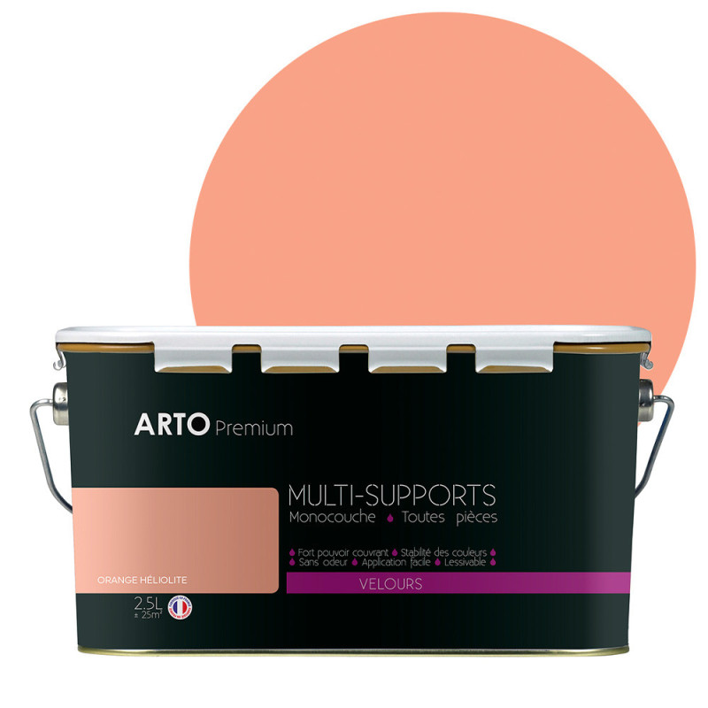Peinture ARTO premium multi-supports murs, plafonds, boiseries, plinthes et radiateurs orange heliolite velours 2,5 L