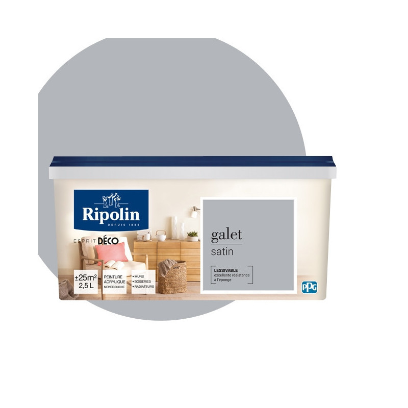 Peinture RIPOLIN Esprit Déco murs, plafonds, boiseries et radiateurs gris galet satin 2,5L