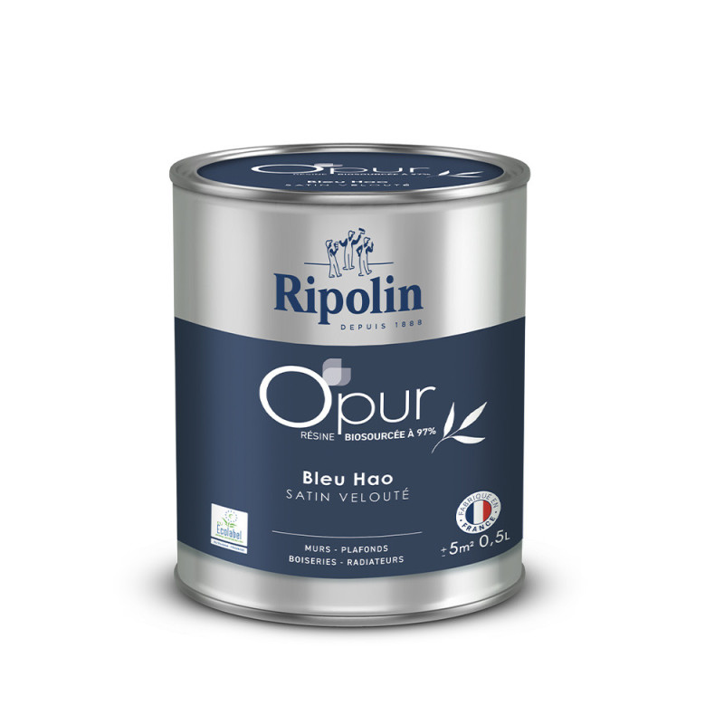 Peinture RIPOLIN Opur bio sourcée multi-supports bleu hao satin 0,5L