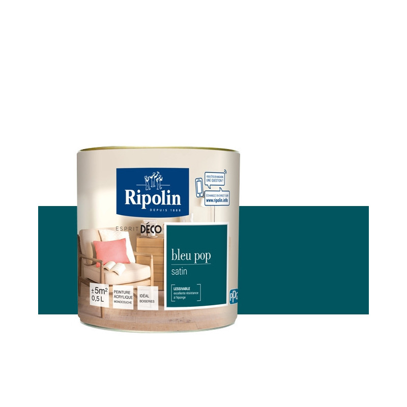 Peinture RIPOLIN Esprit Déco murs, plafonds, boiseries et radiateurs bleu pop satin 0,5L