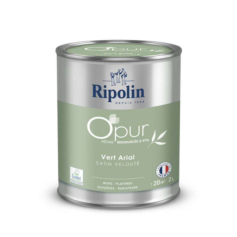 Peinture RIPOLIN Opur bio sourcée multi-supports vert arial satin 2L