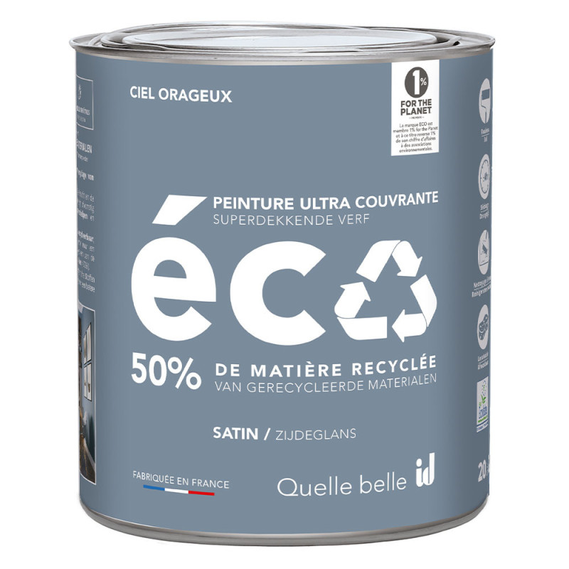 Cette peinture bleu orageux écologique repose sur une technologie de revalorisation avant-gardiste. Sa composition finale contient 50% de matériaux recyclés.