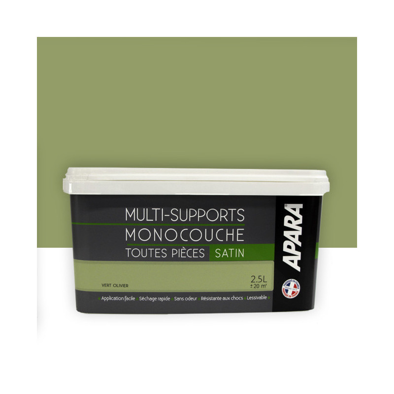 Peinture Apara multi-supports Murs, plafonds, boiseries, plinthes...vert olivier satin 2,5L