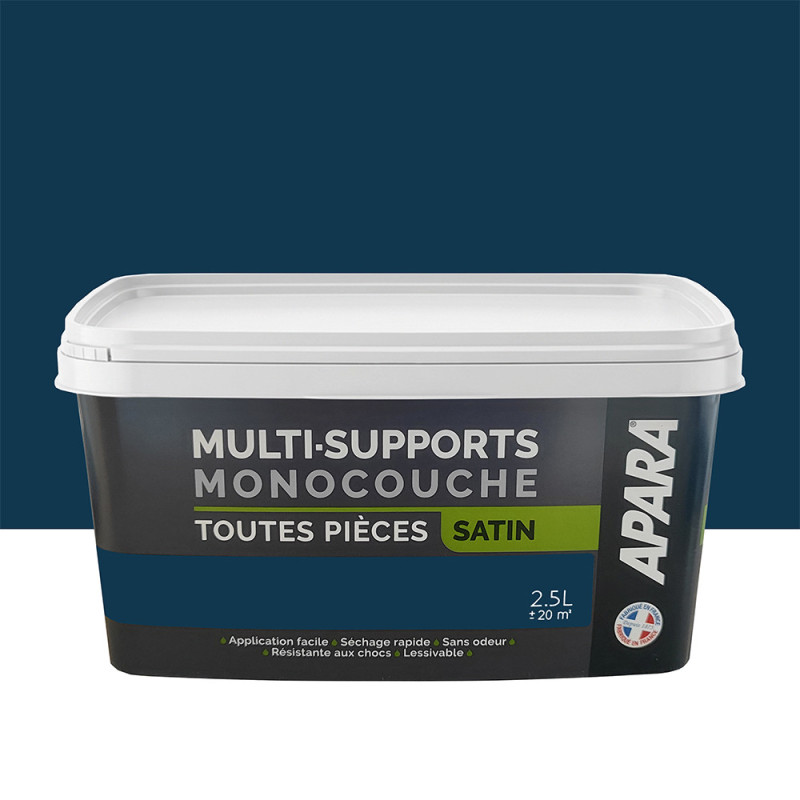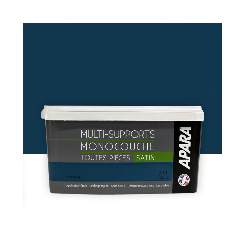 Peinture Apara multi-supports Murs, plafonds, boiseries, plinthes... bleu phare satin 2,5L