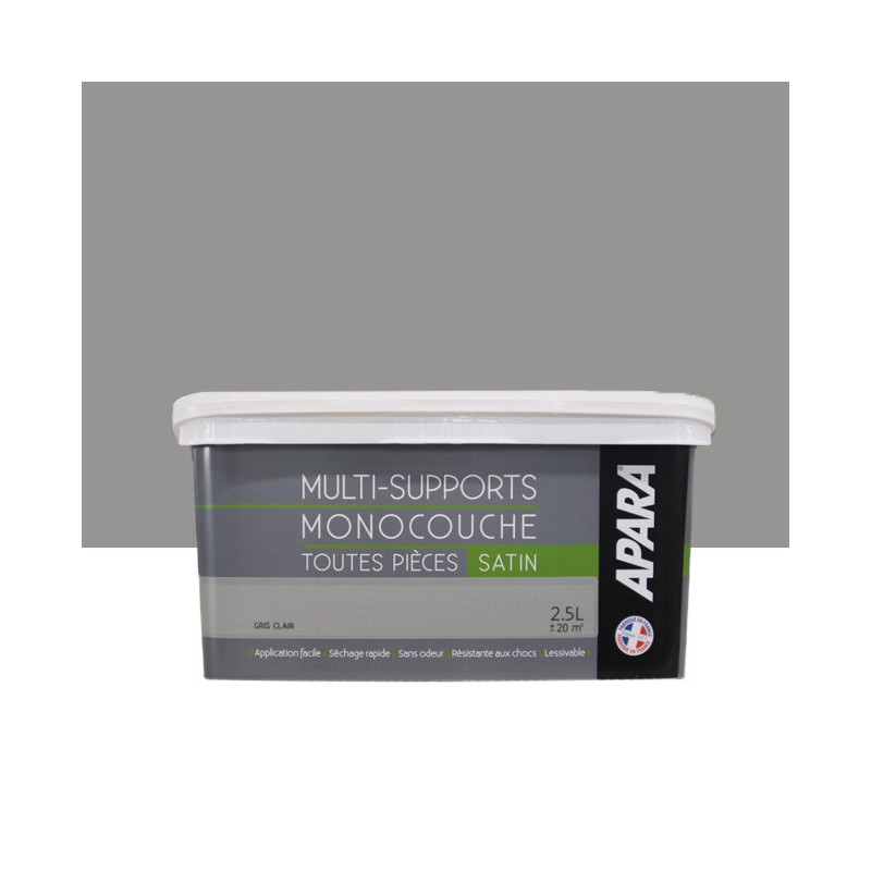 Peinture Apara multi-supports Murs, plafonds, boiseries, plinthes...gris clair satin 2,5L