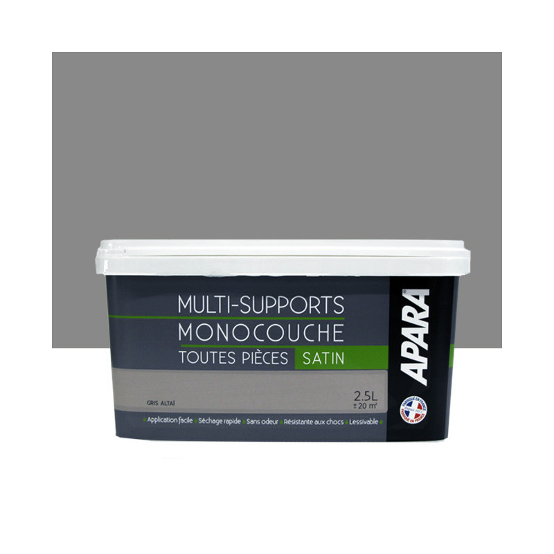 Peinture Apara multi-supports Murs, plafonds, boiseries, plinthes... gris altai satin 2,5L