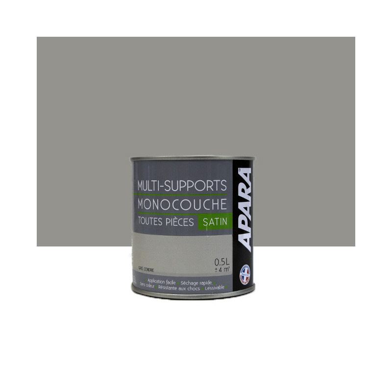 Peinture Apara multi-supports Murs, plafonds, boiseries, plinthes... gris cendré satin 0,5L