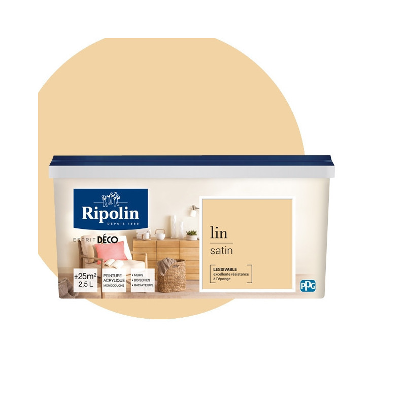 Peinture RIPOLIN Esprit Déco murs, plafonds, boiseries et radiateurs lin satin 2,5L