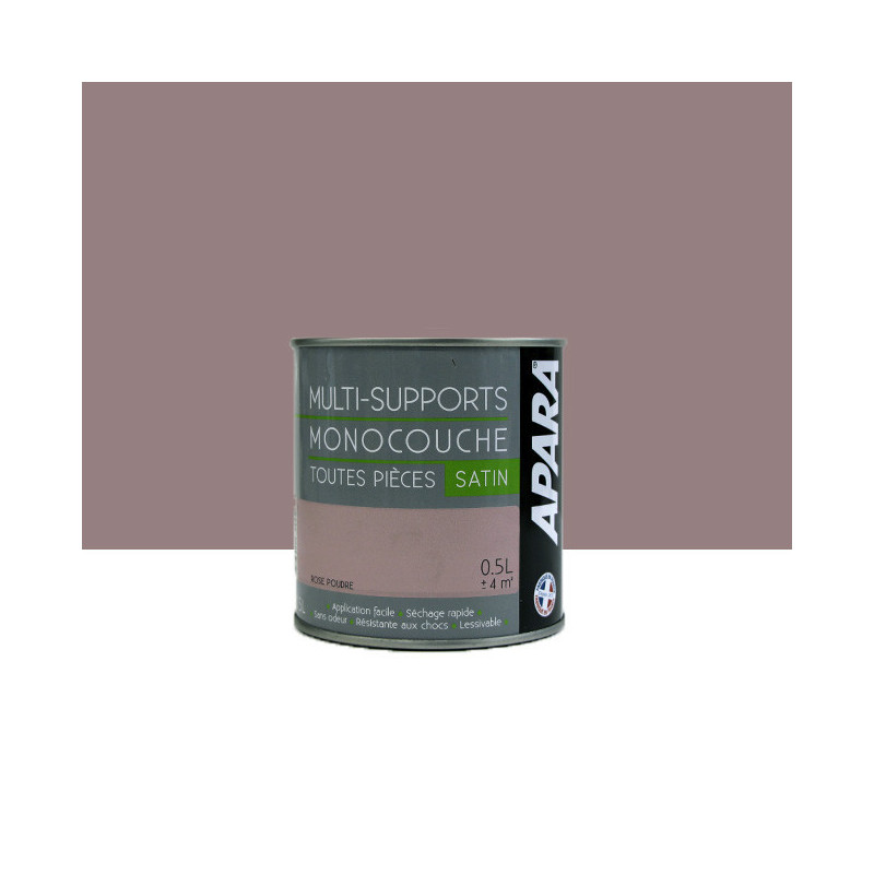 Peinture Apara multi-supports Murs, plafonds, boiseries, plinthes... rose poudré satin 0,5L