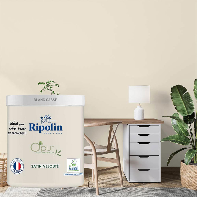 La gamme de peinture Ripolin Opur couleur blanc cassé est composée à 97% de résines bio-sourcées. Elle associe haute qualité et performance tout en contribuant à la préservation de votre santé et de l'environnement.