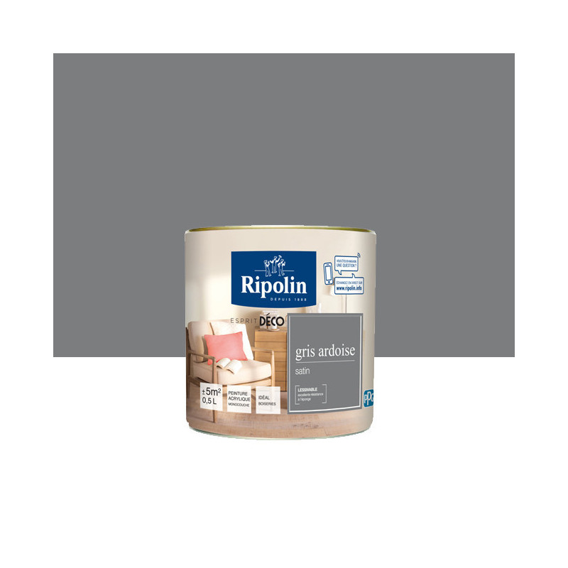 Peinture RIPOLIN Esprit Déco murs, plafonds, boiseries et radiateurs gris ardoise satin 0,5L