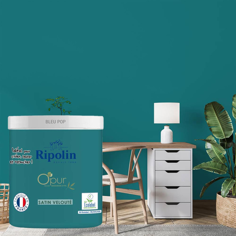 La gamme de peinture Ripolin Opur couleur bleu pop est composée à 97% de résines bio-sourcées. Elle associe haute qualité et performance tout en contribuant à la préservation de votre santé et de l'environnement.