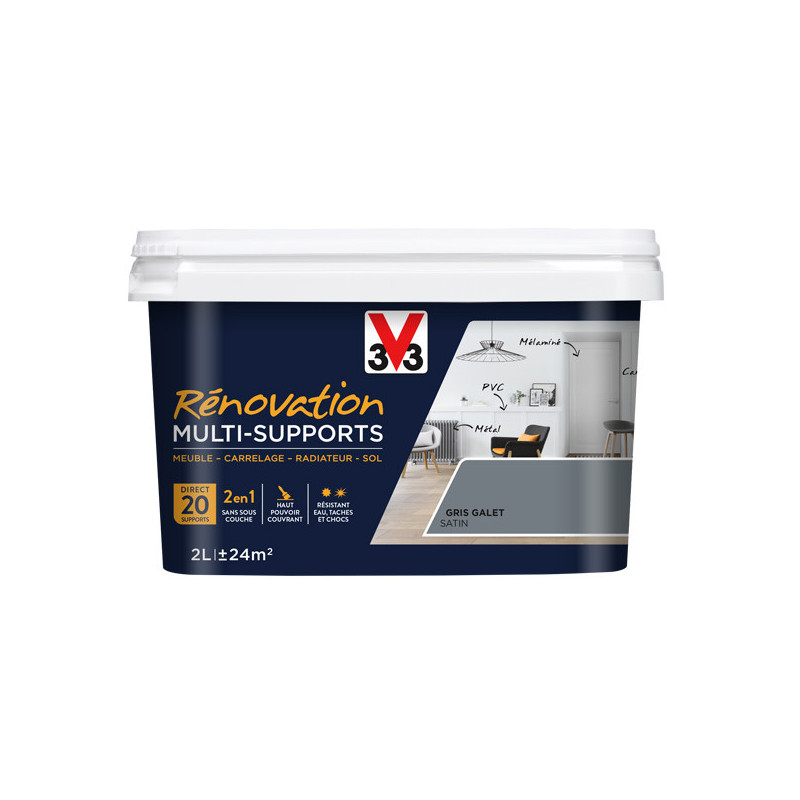 Peinture V33 rénovation multi-supports gris galet satin 2L
