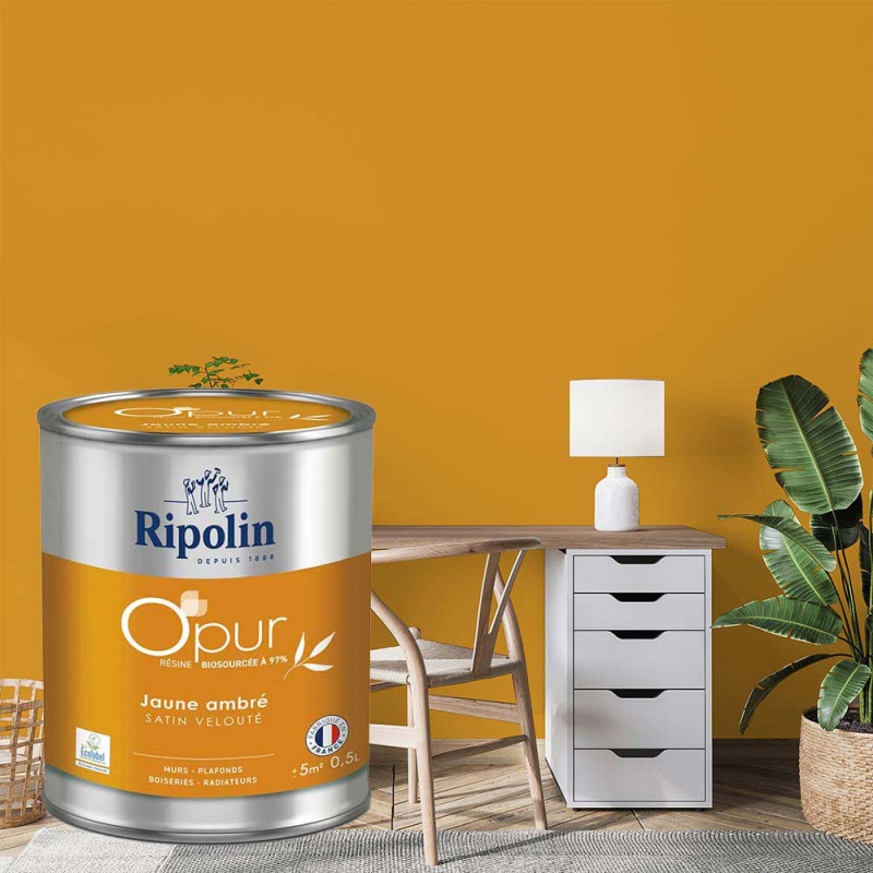 Peinture RIPOLIN Opur bio sourcée multi-supports jaune ambre satin 0,5L