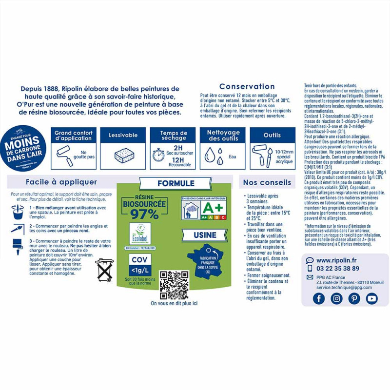 La gamme de peinture Ripolin Opur couleur jaune ambre est composée à 97% de résines bio-sourcées. Elle associe haute qualité et performance tout en contribuant à la préservation de votre santé et de l'environnement.