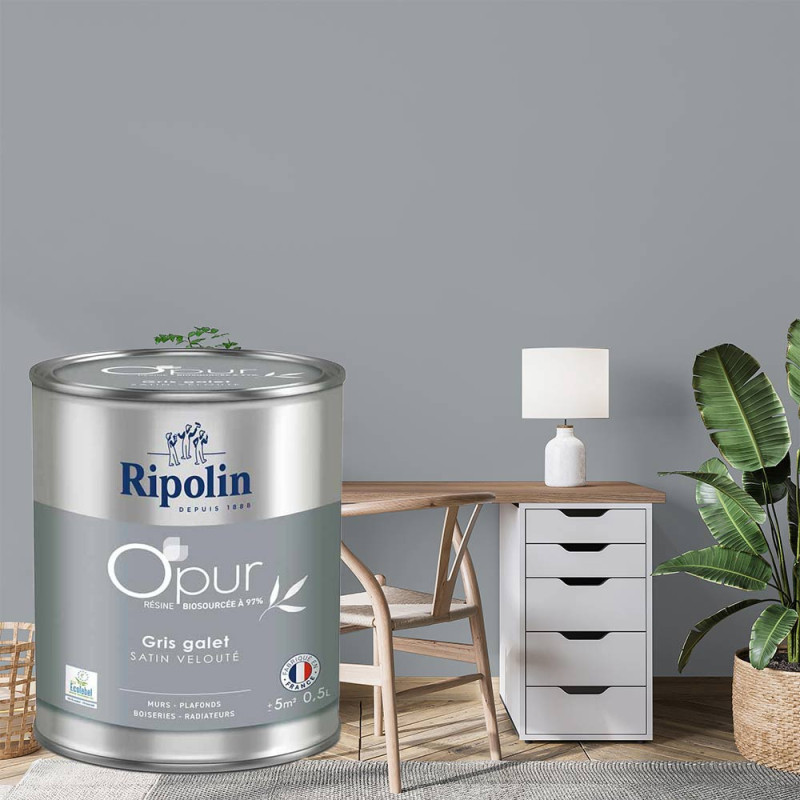 Peinture RIPOLIN Opur bio sourcée multi-supports gris galet satin 0,5L