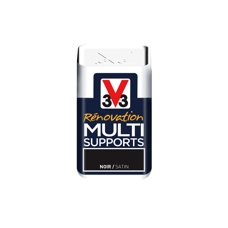 La peinture V33 Rénovation Multi-supports a été spécialement développée pour rénover toutes les surfaces, dans toutes les pièces de la maison. Polyvalente, elle convient parfaitement sur les murs, boiseries, radiateurs, fenêtres, portes, meubles intégrés, mobiliers, objets, plans de travail, sols, escaliers...Elle conviendra pour des supports en : bois (brut, verni, peint, lasuré , toutes essences), dérivés de bois (mélaminé, stratifié, osb, contreplaqué), carrelage (faïence, listel, granit, grès), métal (ferreux et non ferreux), verre. Cette peinture est polyvalente, présente une haute résistance à l'eau, aux tâches, aux rayures, aux chocs...Facile d'entretien et d'application. Séchage entre deux couches : 6 heures. Séchage complet en 24 heures.