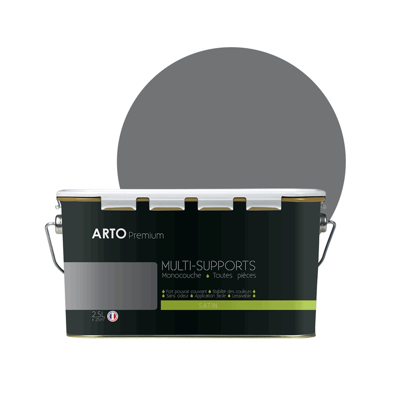 Peinture ARTO premium multi - supports murs, plafonds, boiseries, plinthes et radiateurs gris acier satin 2,5 L